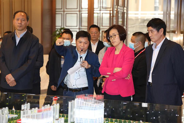 为加快项目推进,省、市、县、区领导亲临项目现场,观看项目宣传片、项目沙盘,了解项目进展情况。随后,各级领导参加了由李松殿副市长主持召开的项目调研座谈会,听取了公司主要负责人对项目的整体情况介绍及工作汇报。