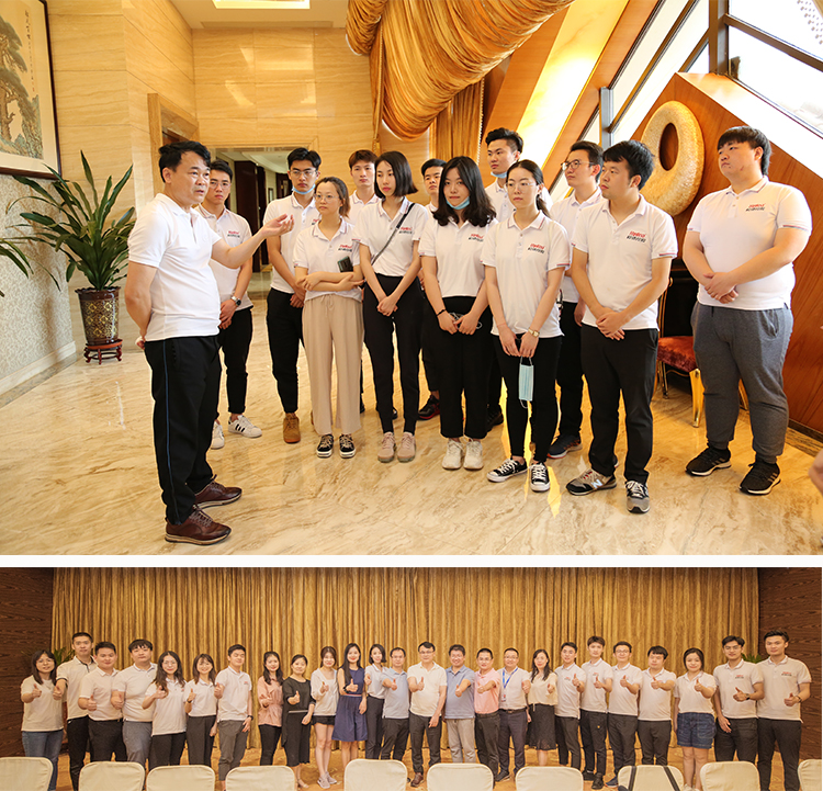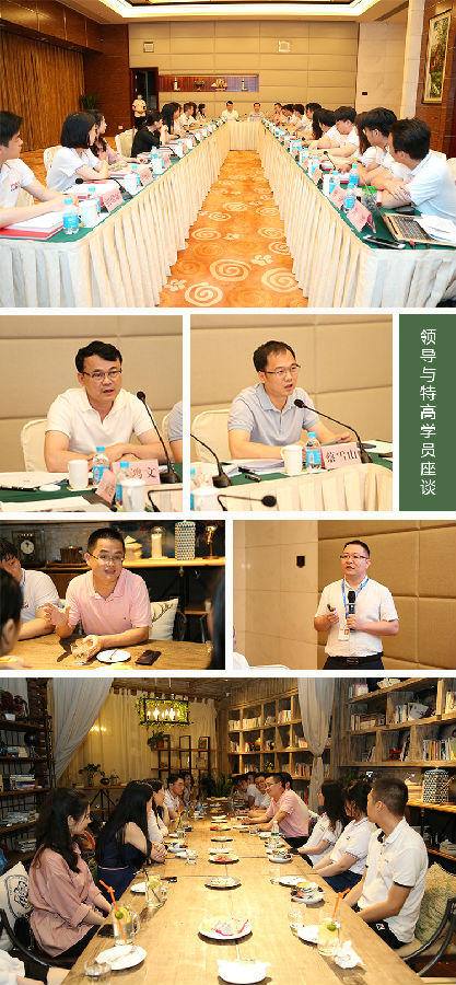 下午的座谈交流会上,蔡鸿文主席、鸿艺集团执行总裁蔡雪山先生、主席助理何小辉先生、人力资源部总监邓志文先生出席。在认真听取了特高班学员们当天游览所感后,分享了自己的经验和感悟。蔡雪山先生分享了他在工作中总结出的的“初心、信心、匠心、恒心”及“看似偶然、实则必然、尽其当然、顺其自然”等“四心”和“四然”,让学员们受益良多。会上,蔡主席亲切又不失深情的谆谆教导更是让大家在感动的同时,立志建设更好的毅德和家乡。会后,蔡雪山总裁还与学员们一起品尝客家珍馐,宾主尽欢。