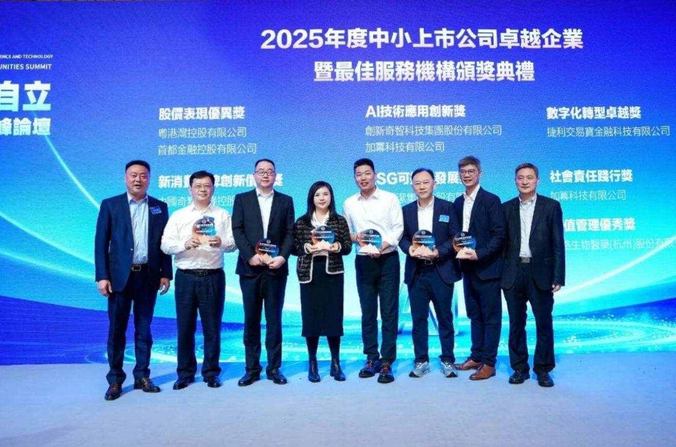 2025年12月5日,由香港中小上市公司协会、深圳市金融商会联合主办,粤港湾控股有限公司(01396.HK)等机构承办的“AI赋能·科技自立——中小企业创新与机遇高峰论坛”在香港四季酒店成功举办。本次活动汇聚香港特区政府代表、投资机构与科技企业等,共同探讨在“十五五”规划背景下,香港如何构建“科技·资本·创新”融合的产业新生态,探讨中小企业在AI浪潮中的发展路径。作为论坛承办方之一,粤港湾控股在活动中系统分享了企业的转型实践与发展战略。