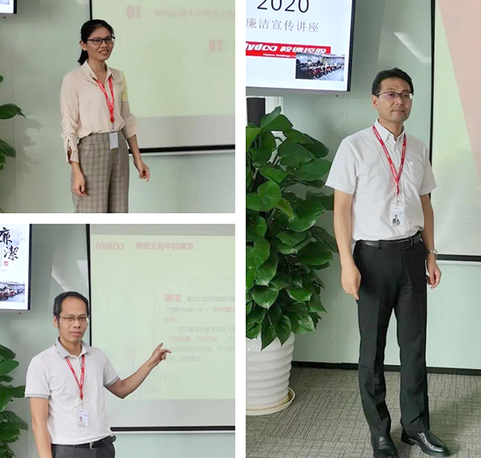 去年集团年终述职会上,集团董事会联席主席蔡鸿文讲话要求:全体员工要紧绷廉洁从业之弦,切实筑牢拒腐防变的堤坝,严格遵守各项制度、各个环节,以廉洁自律为支撑谋求企业的健康、长远发展。为此,2020年4月以来,集团风险控制中心抓住召开审计进场会、新员工入职培训、特高人才班培训的契机,开展了多场以“廉洁从业、恪守正道”为题的廉洁宣贯会,防微杜渐,惩防并重,营造风清气正的毅德企业文化。